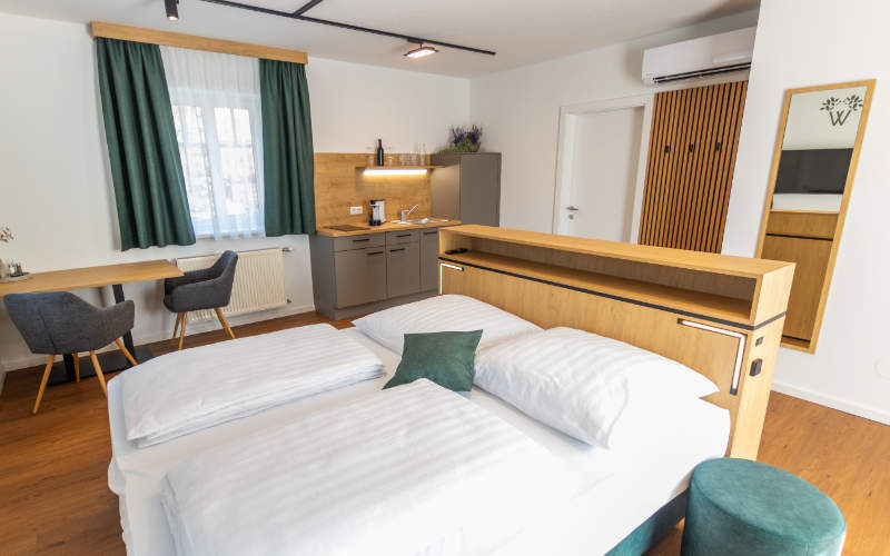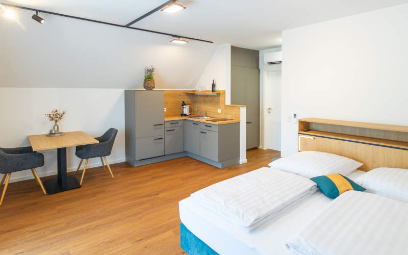 Ob für ein Wochenende oder einen längeren Aufenthalt – bei uns wohnst du komfortabel, unabhängig und mitten im Geschehen!
