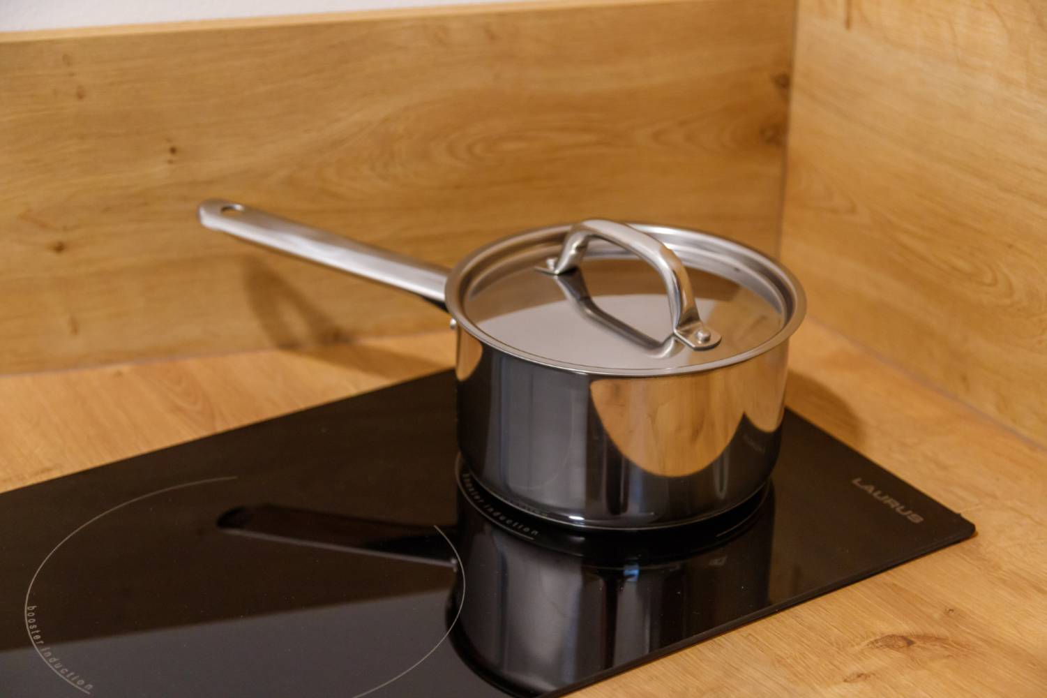 Auf dich wartet ein heller Wohn- und Schlafbereich mit einem komfortablen Doppelbett, einem praktischen Esstisch sowie einem modernen Flachbildfernseher für entspannte Abende. Die voll ausgestattete Küche mit Kochfeld, Kühlschrank und allen nötigen Utensilien ermöglicht dir flexibles Kochen ganz nach deinem Geschmack.